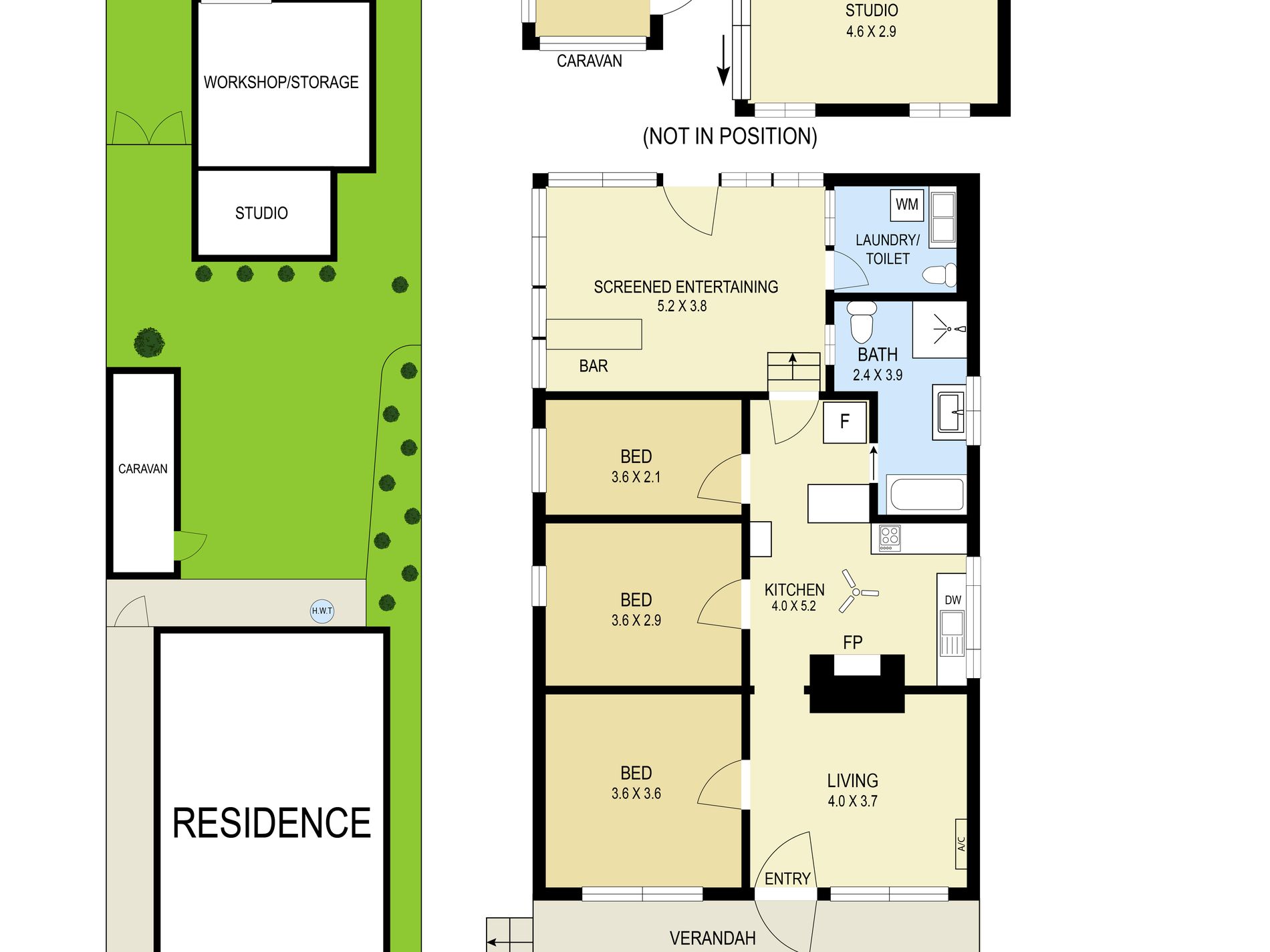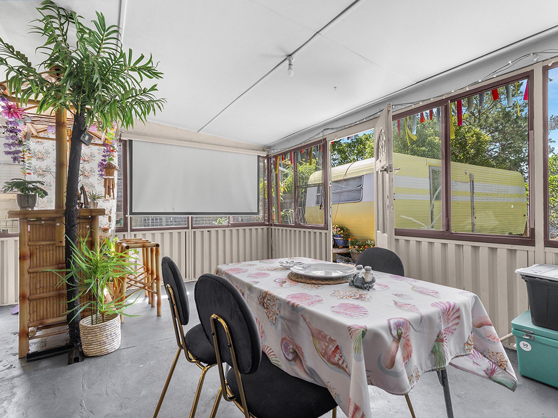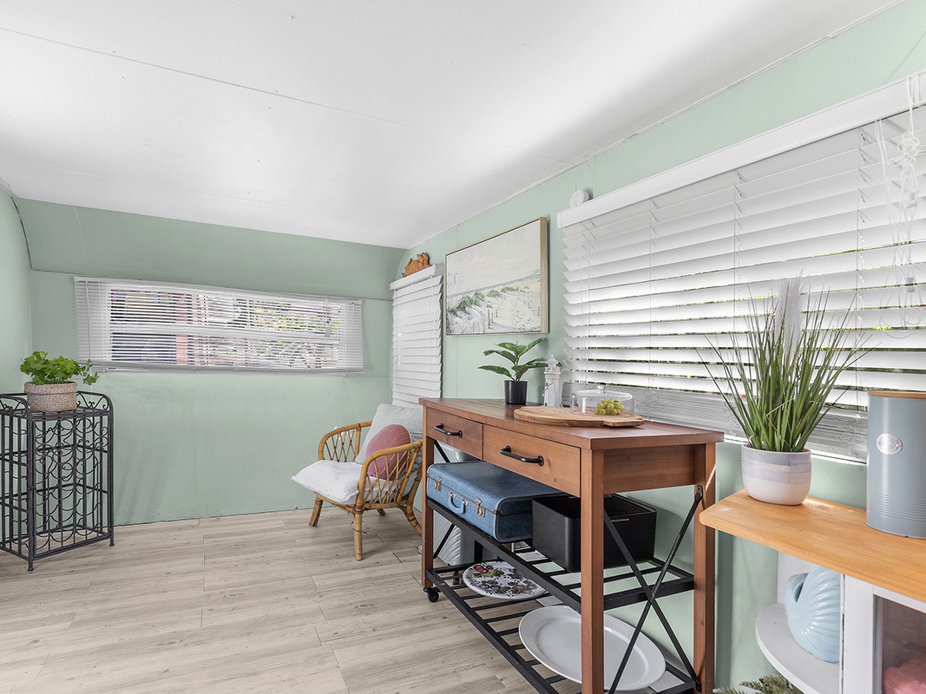 Three bedrooms within the home, plus a fourth bedroom and TV room - freestanding from the home. This fully lined and air conditioned caravan is included! So groovy, you'll LOVE it...!!