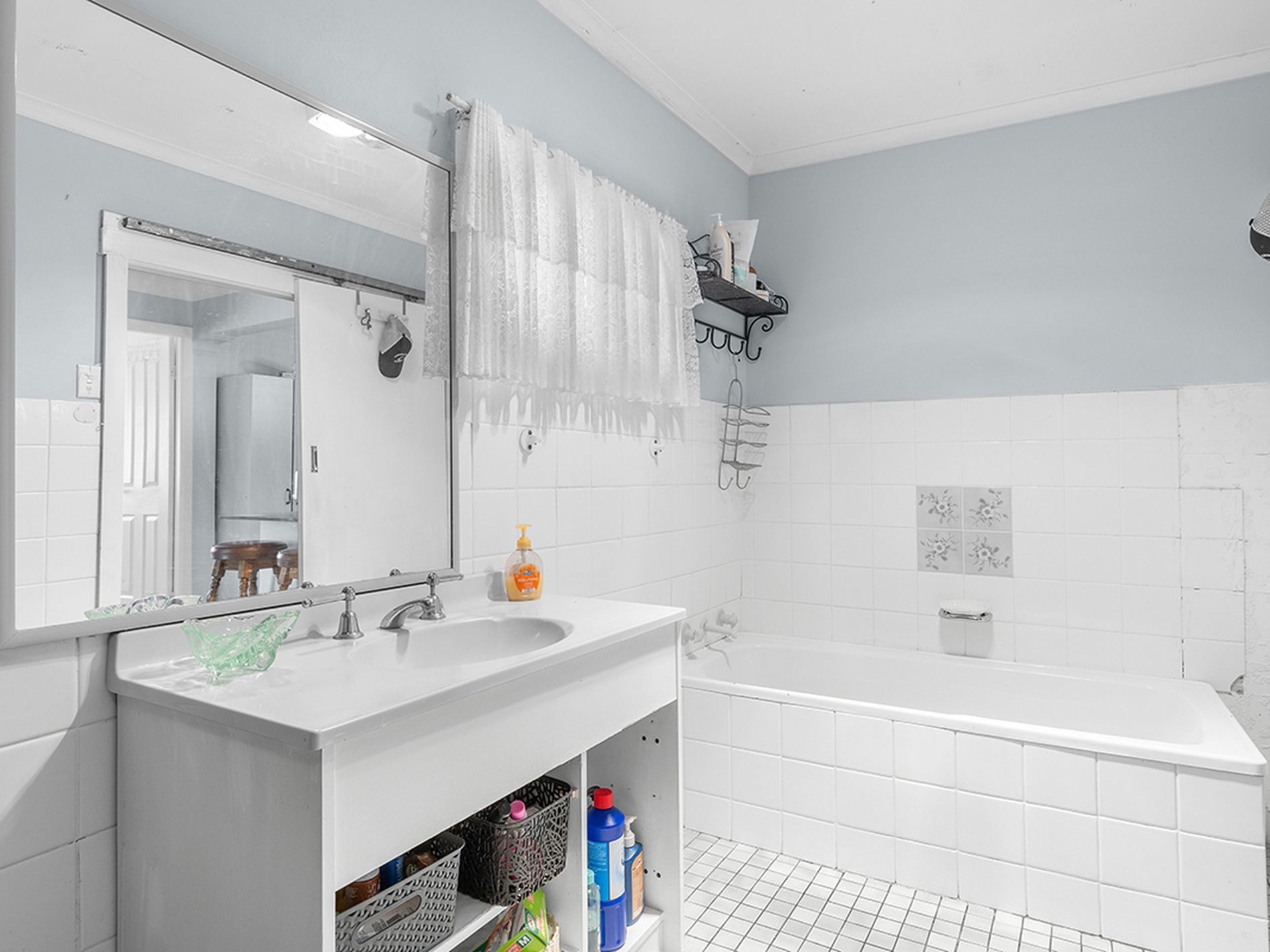 The bathroom is very large - a rare treat for properties of this era. This area of the home will look forward to an upgrade one day, but it's perfectly sturdy and functional as is.!