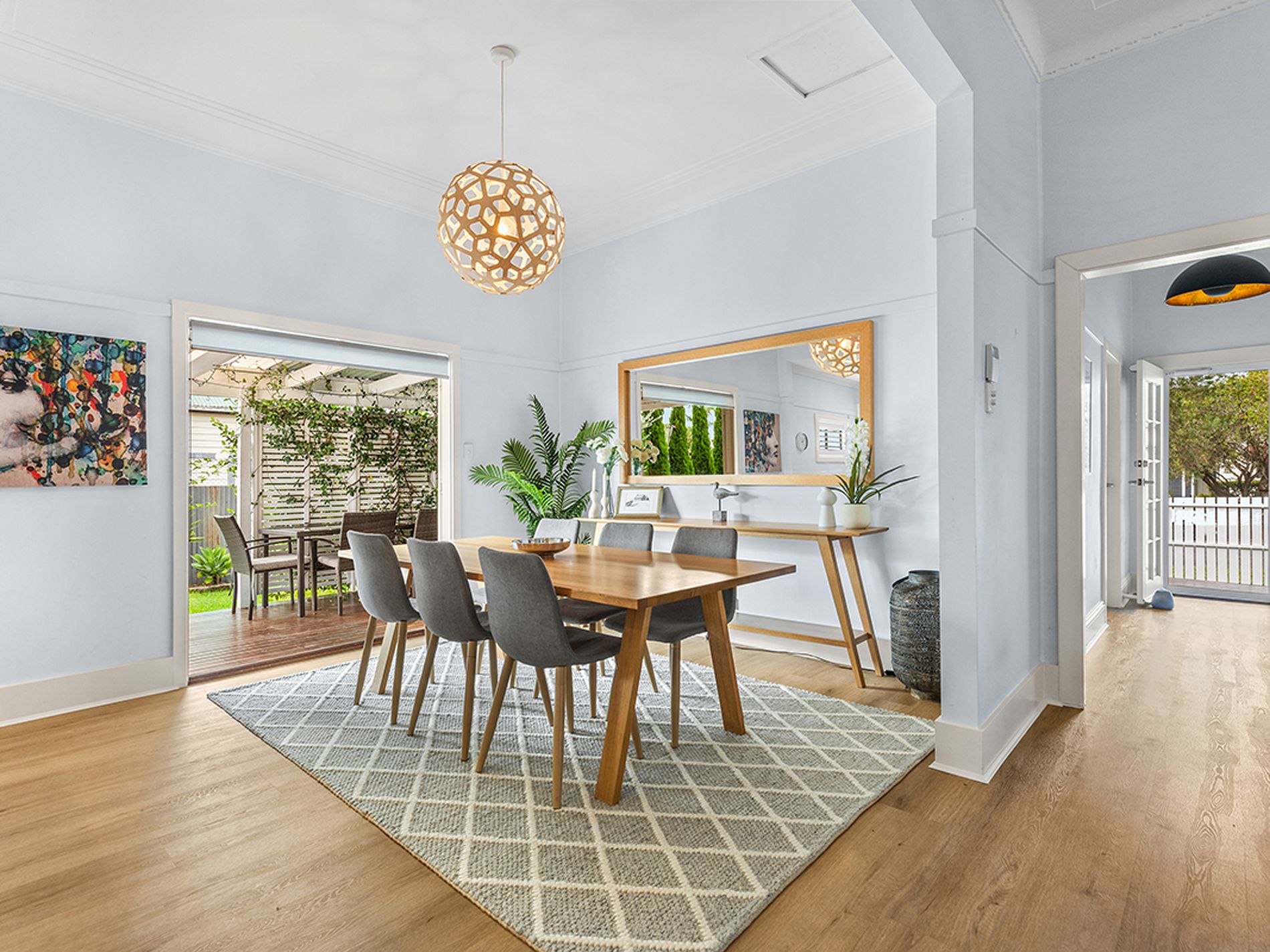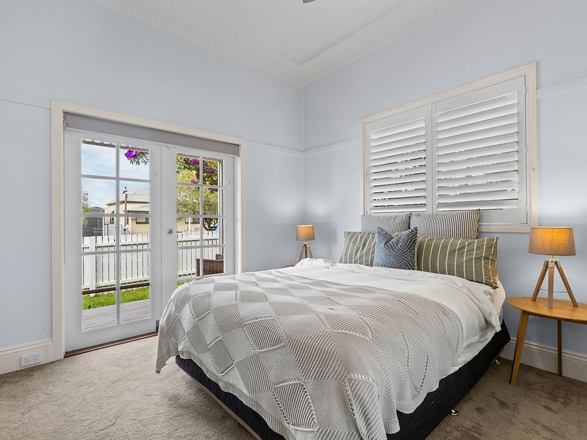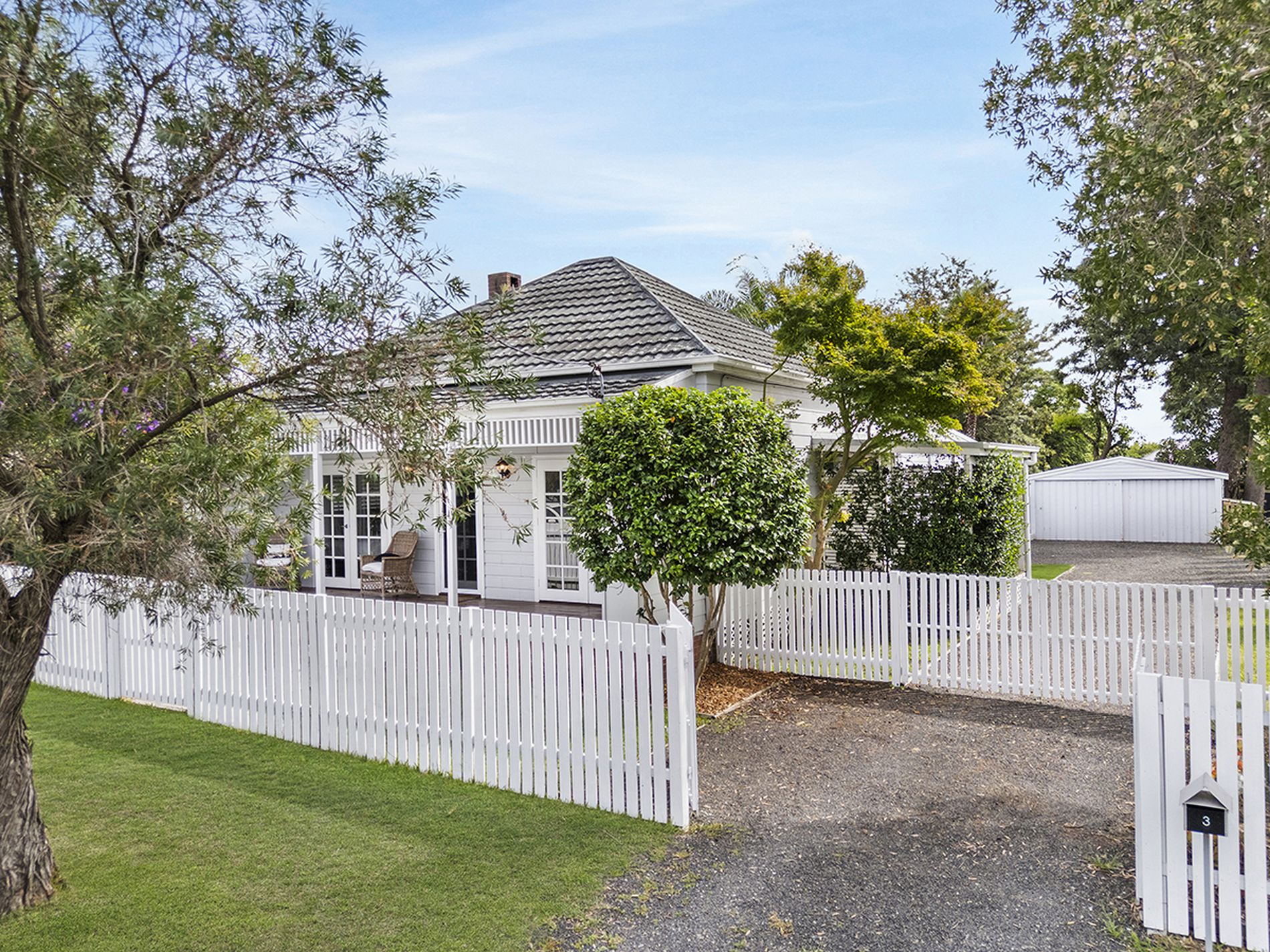 French doors off two bedrooms and the dining area open onto charming timber decks